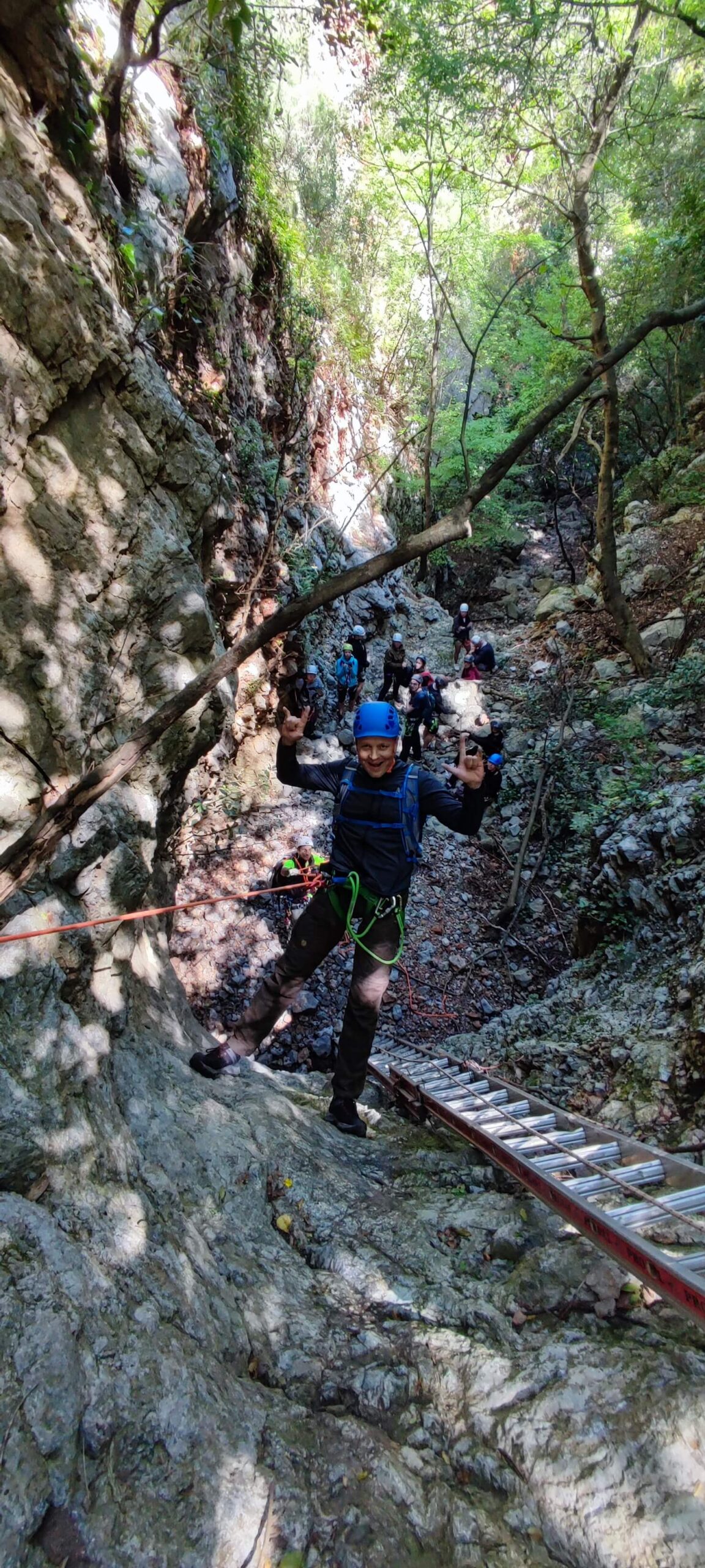 In the wider area of Loutraki we will go Canyoning this time. The canyon is ideal for those who want to experience a first experience in a dry canyon. It is suitable for beginners but also for more experienced people who want to try and live a unique experience.